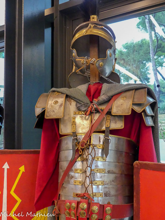 Manchons celtes en cuir de protection. Dyptichon, tablette en cire utilisée par les soldats. Casque impérial italique de type Hebron.