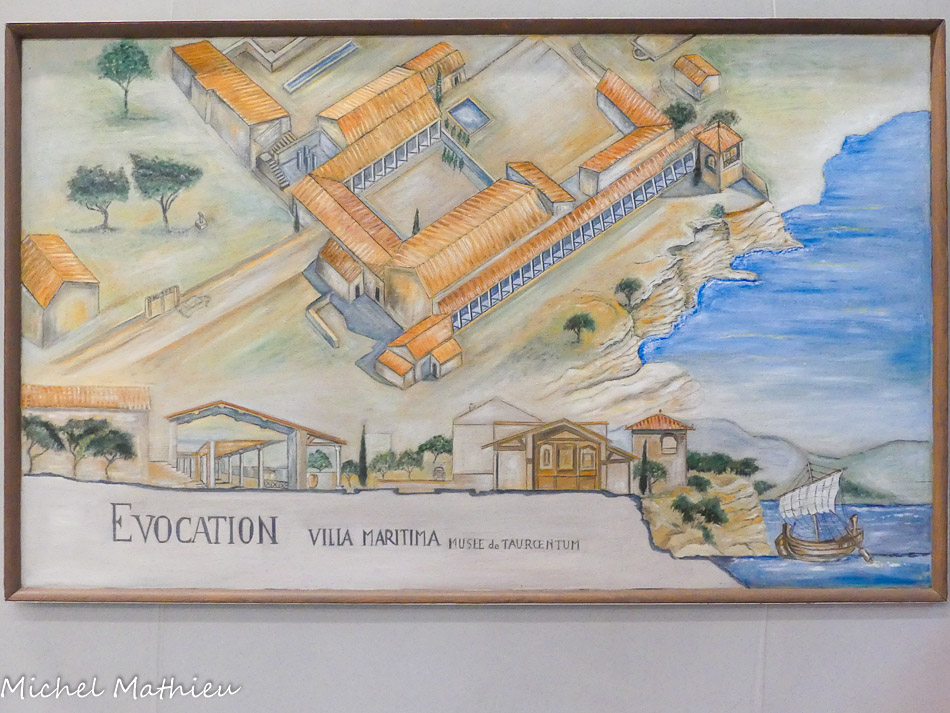Le musée porte le nom de Tauroentum dans la mesure où la villa maritima a longtemps été prise pour le comptoir massaliote de Tauroentum. L'archéologie a permis de montrer que Tauroentum se situe en réalité au Brusc. Les magnifiques aquarelles sont d e Jean-Marie Gassend, architecte-archéologue, aquarelliste et auteur. Auteur d’une thèse d’architecture navale antique, il a effectué des fouilles à Rome, Aléria, Bizerte, Carthage, Marseille, Fos, en Libye, en Tunisie et au Yémen et plongé sur les épaves grecques et romaines de Cavalière, la Madrague de Giens et l’anse des Laurons. Il est décédé le 5 septembre 2025.