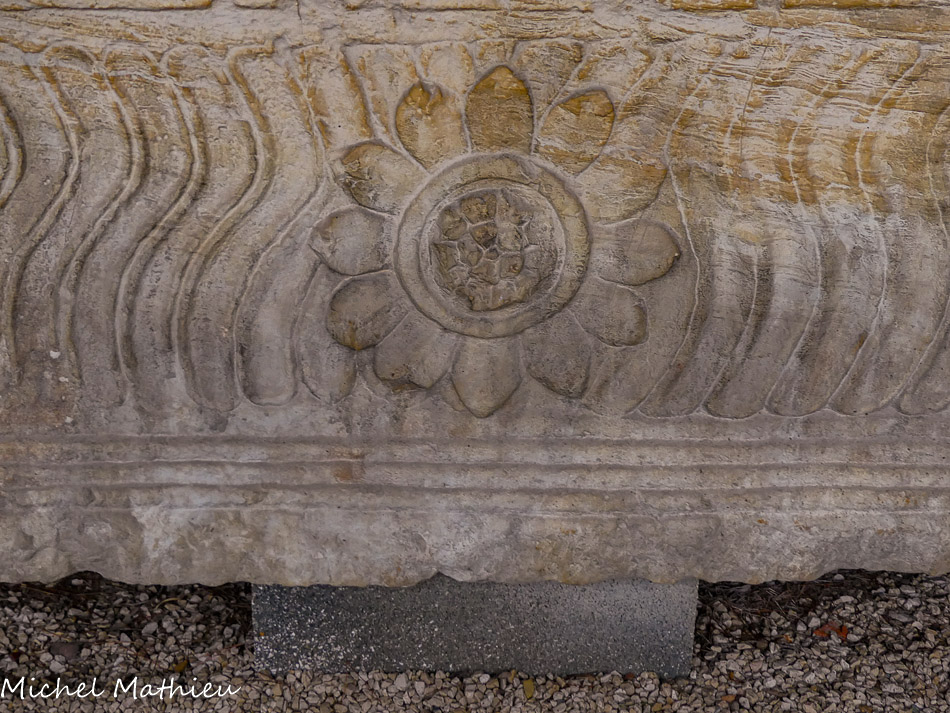 Ce beau sarcophage monolithe décoré de strigiles est du IIe-IIIe siècle, et fut découvert en 1830 sur le site Il est en calcaire local finement travaillé, et pèse 2600 kg.