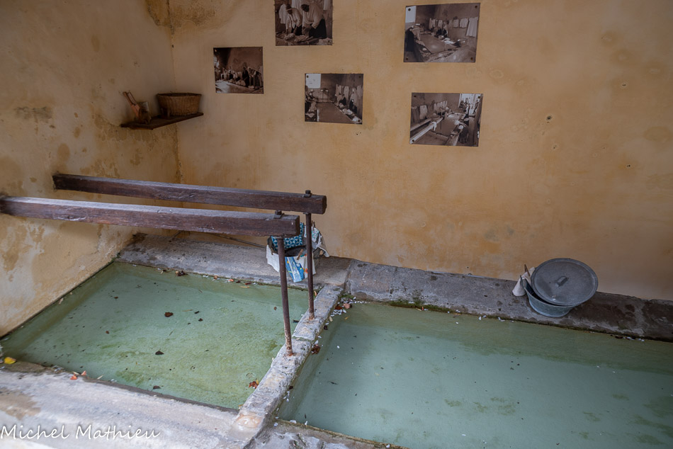 En effet, cette rue s’appelle également la rue des basses fontaines. Elle se trouve juste en contrebas de l’ancien rempart et de l’ancienne place aux bestiaux du village. Cette fontaine trouve sa source à pratiquement 2 km plus loin, et, lorsque le seigneur de Cadenet décida de l’installer en 1535, ce fut un progrès énorme pour le village. À cette époque, pas de lavoir. Il fut installé à la fin du XIXe siècle pour permettre aux femmes du quartier de ne pas avoir à se rendre trop loin pour laver leur linge. Si vous vous mettez sur la grille qui se trouve devant la fontaine, vous pourrez presque avoir le vertige : en dessous se trouve une descente d’eau, qui permet à un ruisseau, un « Vabre », de s’écouler vers la Durance. Elle a deux crachoirs en fonte en forme de tête humaine.