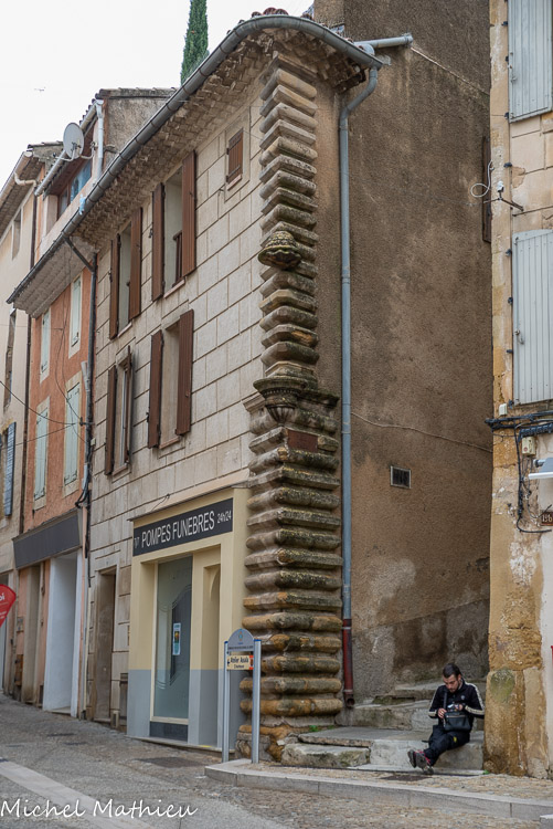 Maison avec une étrave à bossages qui est un vestige de l'ancien rempart. Au milieu se trouve un oratoire vide.