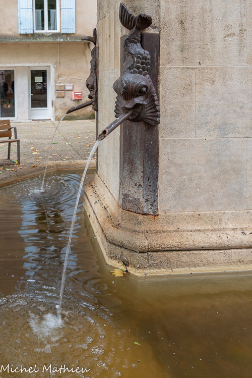 Fontaine du Marché avec 4 dauphins qui rappelle celle d’Aix-en-Provence.