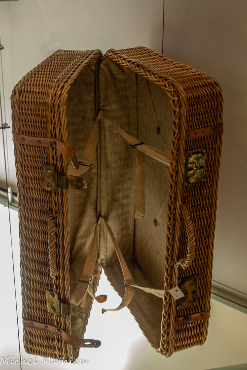 Toilette. Osier rond blanc, laiton. Vannerie à montants paralmèles, tissage en crocane, poignée sur couvercle, bord natté, fermetures à serrures métalliques. Fabriquée à Cadenet, début XXe siècle.