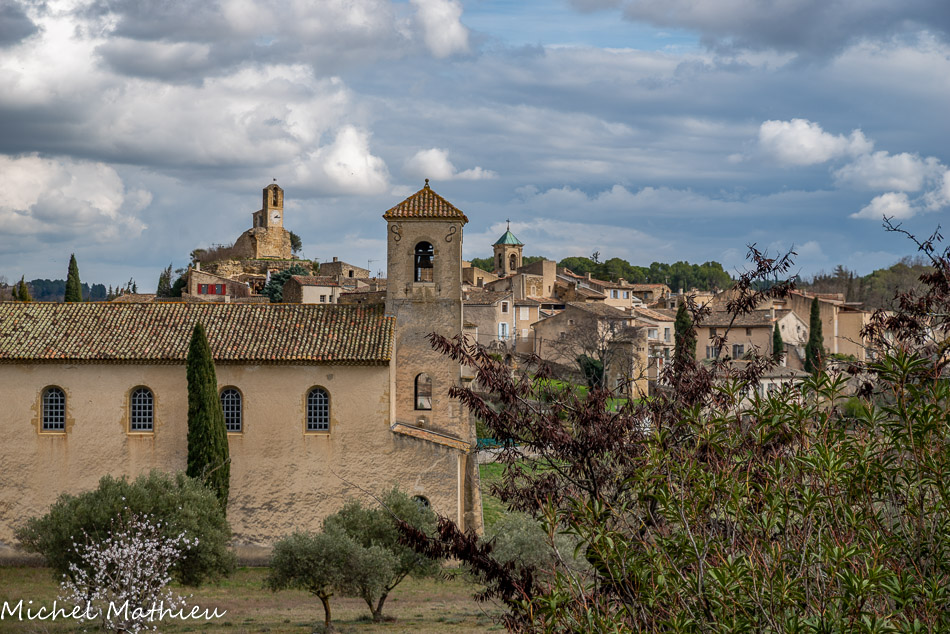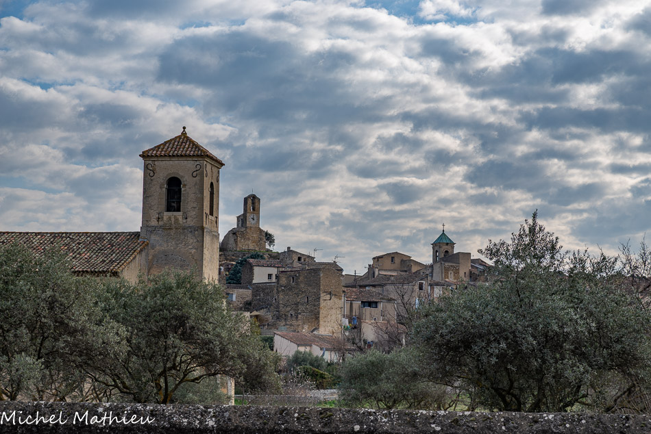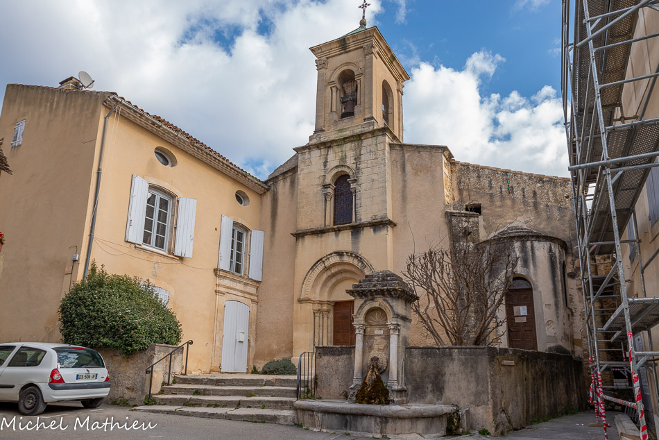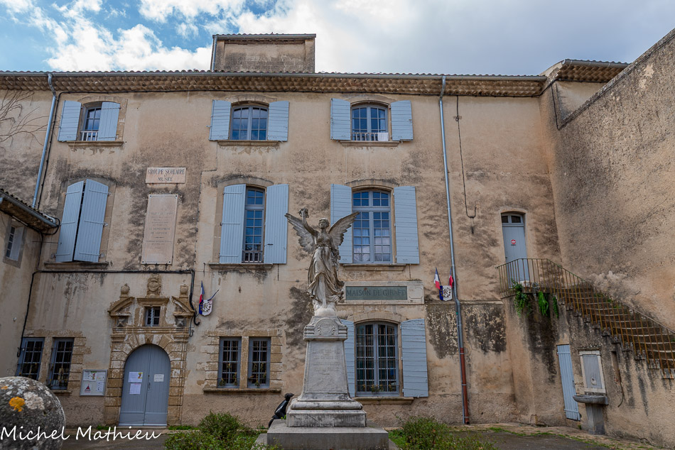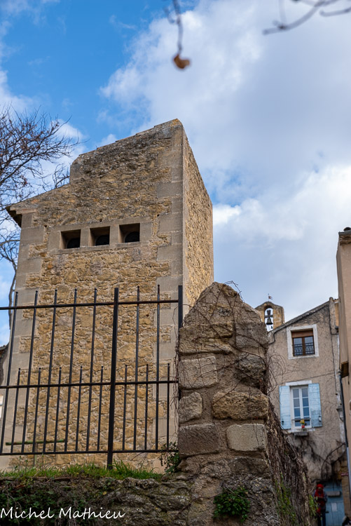 Le Castellas. Les maisons du village primitif s’enroulaient autour de la butte du Castellas au sommet de laquelle se trouvait une tour fortifiée de l’an mil, qui surveillait le passage de la Méditerranée vers les Alpes. Aujourd'hui, on y voit le beffroi, ou "boite à sel". Ce clocher mur abrite l'horloge du village, il fût construit au XVIIe siècle sur l'emplacement de l'ancien château à motte. Il abrite une cloche de bronze de 70 cm fondue à Carpentras par J-L Romain en 1732.