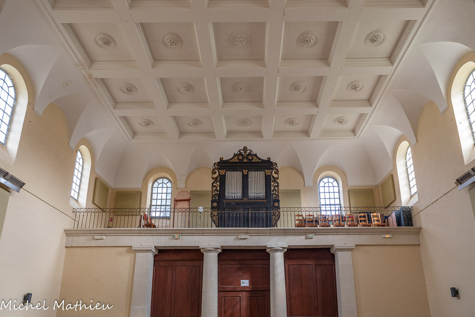 La tribune d'orgue portée par deux colonnes et deux piliers engagés, double le porche. Un orgue est installé dans le bâtiment, en 1844. L'orgue est construit vers 1840 par Augustin Zeige.