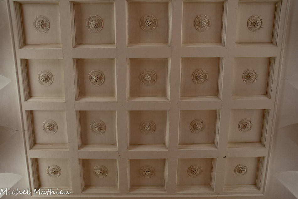 Plafond à caissons plâtrés ornés d'une rosace.