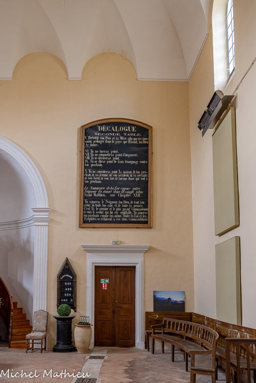 nscription : les dix commandements ou décalogue, suivis des deux commandements du Sommaire de la Loi, tiré de l'Evangile selon saint Matthieu.