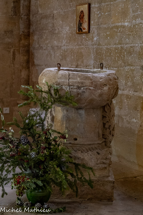 La Fontaine Place de l’Église a été érigée au cours de l’année 1849, son architecture s'inspirant du portail de l’église. Elle se compose de deux colonnes soutenant un arc en plein cintre, surmonté d’une corniche moulurée et couronnée d’un toit pyramidal. Le large buffet d’eau s’inspire de l’architecture antique. Il est orné dans sa partie centrale d’un mufle de lion. Ce type de représentation est ici le témoignage d’une iconographie léguée par les édifices religieux du 11ème siècle.