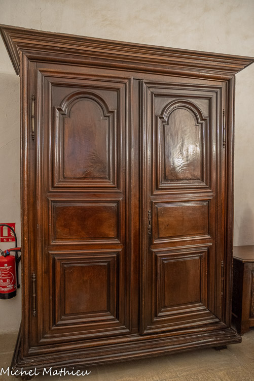 La Sallestre. Cabinet Renaissance - œuvre bourguignonne de la fin du l6ème siècle, noyer, attribué à l’Atelier de Hugues Sambin, (Gray 1520, Dijon 1601), fils de menuisier bourguignon et maître menuisier lui-même. Il est mentionné sur le chantier du château de Fontainebleau en 1544 auprès du Primatice et de Sebastiano Serlio (probable architecte du château de Lourmarin).