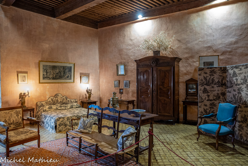 Chambre d'honneur, dite des hommes. Cette pièce affiche une deuxième reconstitution d’une chambre du XVIIIème siècle