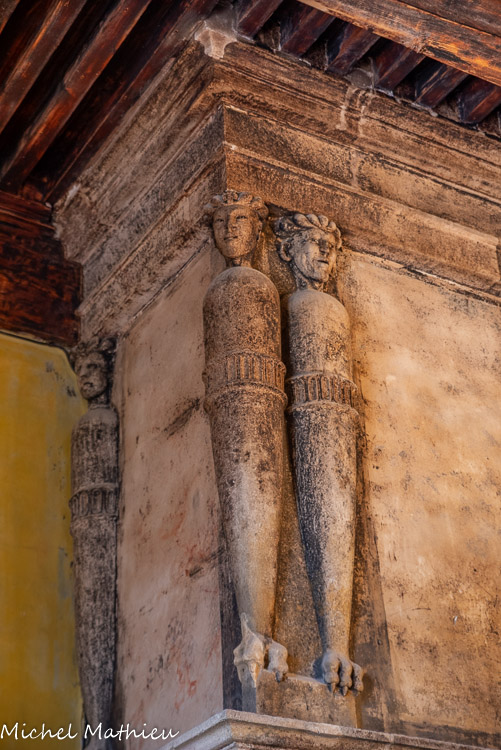 La Sallestre. A Lourmarin, cependant, aux figures classiques dessinées par du Cerceau ont été substituées des têtes d’indiens couronnées de plumes. Cette référence à l’art précolombien» rare et précoce écho de la conquête de l’Amérique», révèle le génie créateur de .l’artiste et ses liens avec les courts princières, qui seules connaissaient alors les découvertes issues du nouveau monde. Un riche décor de peinture à fresque aujourd’hui effacé complétait autrefois la composition sobre et puissante des cheminées.
