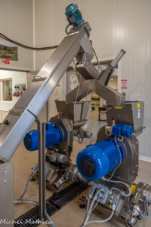 Les malaxeurs. La pâte qui sort du broyeur est malaxée et très légèrement tiédie. Pourquoi tiédir la pâte ? Les olives sont très froides quand elles arrivent au moulin (nous sommes en novembre/décembre).