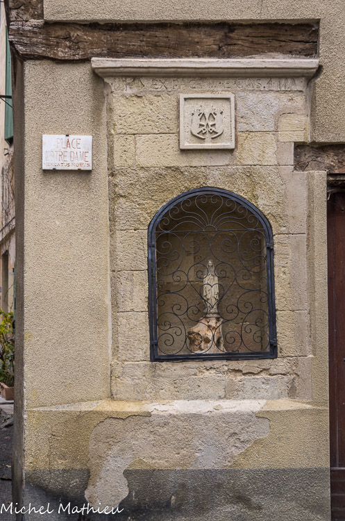 Malaucène. Chapelle Notre-Dame de la Place (aussi nommée N.-D. la Brune ou N.-D. de Consolation). Cette chapelle, attenante à la maison consulaire, servait à déposer les morts en attendant leur transfert au cimetière. Elle fut vendue comme bien national en 1798 : il n'en reste aujourd'hui que la niche visible sur le mur méridional de la place. Elle avait remplacé au XVIIe siècle un plus ancien oratoire destiné à veiller sur le carrefour et sur les réunions qui s'y tenaient.