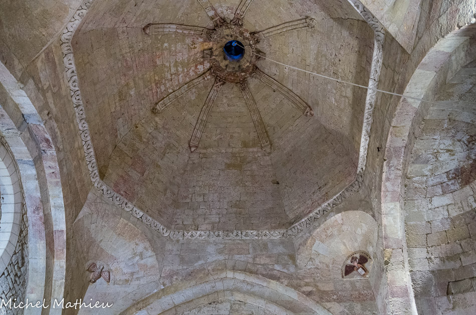 Le passage du plan carré au plan octogonal se fait grâce à des trompes soigneusement appareillées et décorées des symboles des quatre évangélistes, sculptés en un style curieusement naïf.