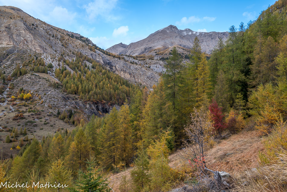 A gauche, on aperçpit le sommet du Pelat. A droite, le sommet du trou de l'Aigle.