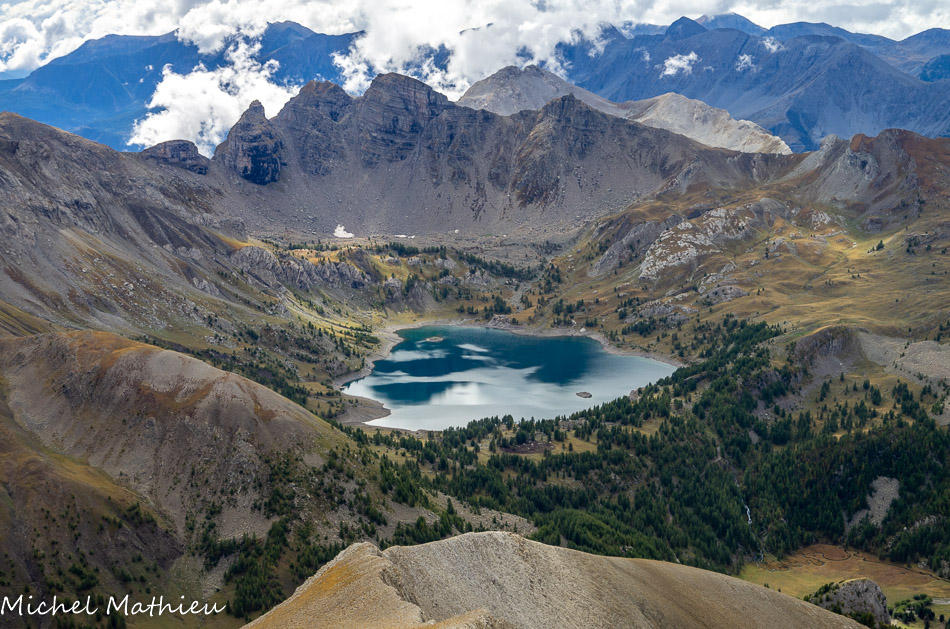 Les tours du lac : la Tour Orientale ou Tour Plate, la Tour Noire ou Tour Carrée, le Sabot, la Grande Tour, la Petite Tour, le col de l'Encombrette, le début du massif de Valplane.