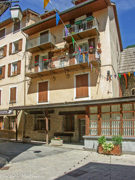 Place Saint Jean. Cette place est restée longtemps la seule du village. On y trouve à la fois l’animation du marché et l’exécution des sentences publiques. Cette Halle était couverte d’une lourde charpente en bois, démontée en 1894. Au XVIIème siècle, l’évêque de Senez en visite pastorale à Colmars est choqué par la présence de deux instruments de torture près des portes de l’église. Il demande leur déplacement : « le divin service en sera plus audible et moins injurieux ». Au fond, Chapelle Notre Dame des Grâces.
