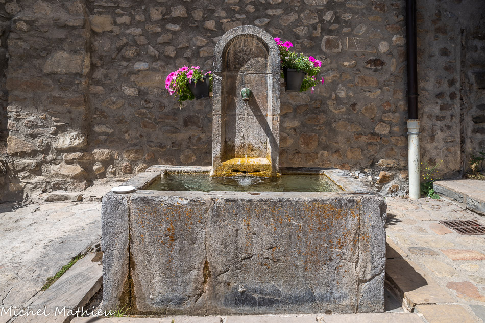 Place de la Fontaine. Fontaine des lavandières. Le Bassin-Bas est bâti en 1635 : c’est la première adduction d’eau du village. La canalisation est réalisée en bois de mélèze. La Fontaine Neuve, circulaire, est ajoutée en 1803.