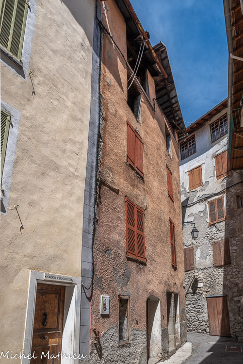 La vallée de la Lance. Au fond, derrière la montagne de Noncière, on aperçoit les sommets de la Dente de Lièvre et de la Frema. 1591 Troisième incendie sur ordre du Sieur de Mirabeau. C’est alors que la population devant l’insécurité et l’exiguïté de ses murs s’installe dans le bourg actuel — encore ville ouverte — et décide, à la demande du prieur, le transfert de la primitive église Saint-Martin de la colline sur remplacement de Saint-Jean « hors-les-murs » détruite par l’incendie. 1672, nouvel incendie, accidentel celui-ci, qui entraîne la destruction totale de la nouvelle agglomération urbaine en plein essor. Devant cette catastrophe, et par l’intermédiaire de son parrain, Monseigneur Villeserain, évêque de Senez, Louis XIV contribue personnellement à la restauration de la cité.