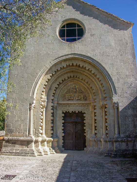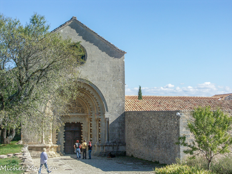 La façade du monastère, et notamment son portail, sont très originaux dans le contexte de l’art roman provençal dont ils se distinguent par plusieurs traits. La façade est unie, sans ornement architectural. Les contreforts d’angle, fréquents en Provence, sont ici absents.