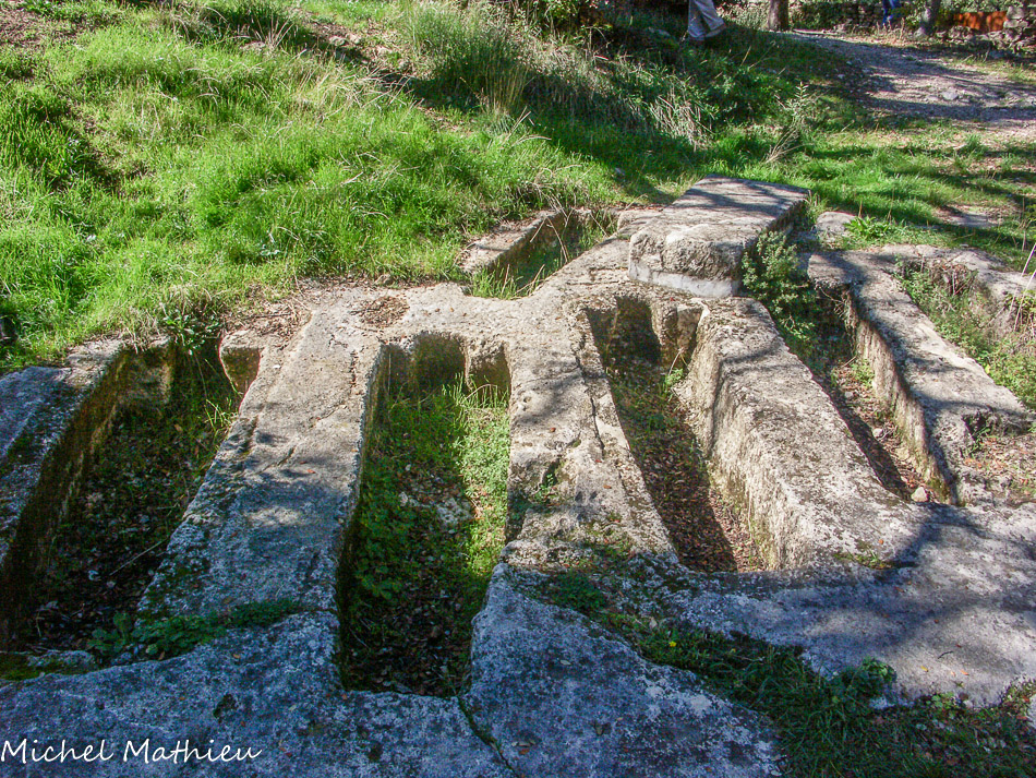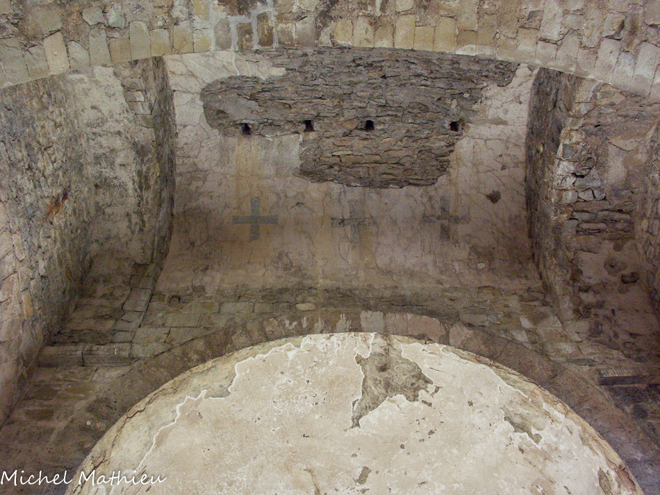 Derrière l’église, se trouvent d’anciennes tombes creusées à même le roc pour y ensevelir des moines.