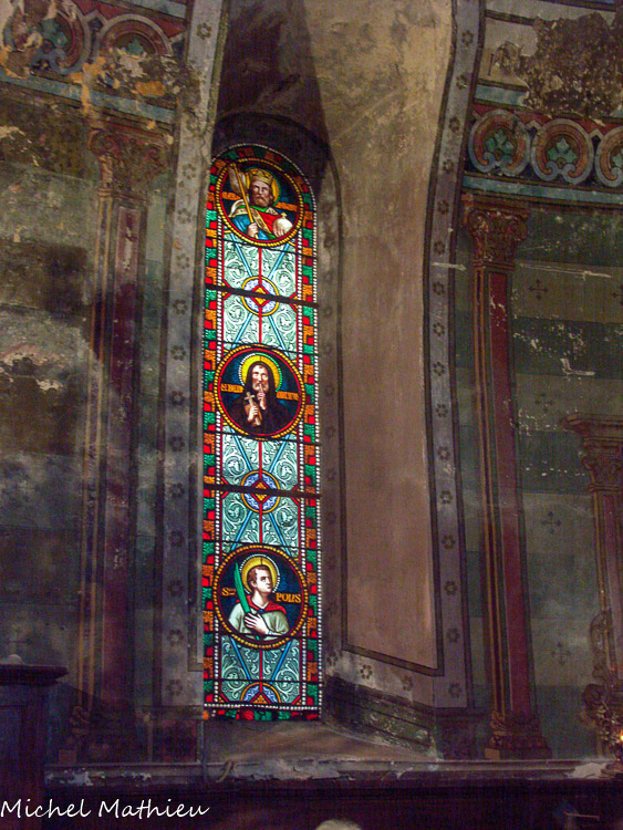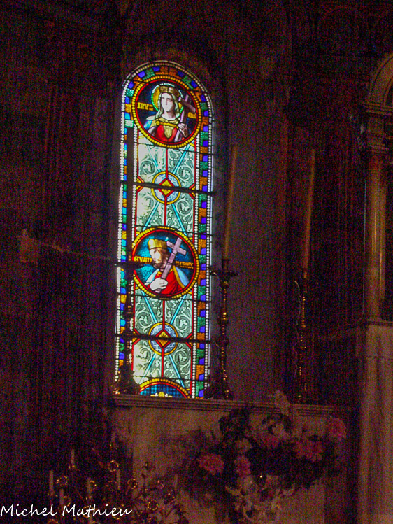 L’église paroissiale de l’Invention de la Sainte-Croix. Vitraux du choeur : "Vincent" "François" et "Martin"