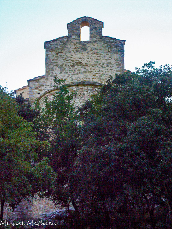 Elle possède un chevet constitué d'une abside et de deux absidioles semi-circulaires percées chacune d'une étroite fenêtre. L'abside centrale prend appui sur un mur pignon surmonté d'un clocheton à baie campanaire unique. Les absidioles prennent appui sur les murs du transept.