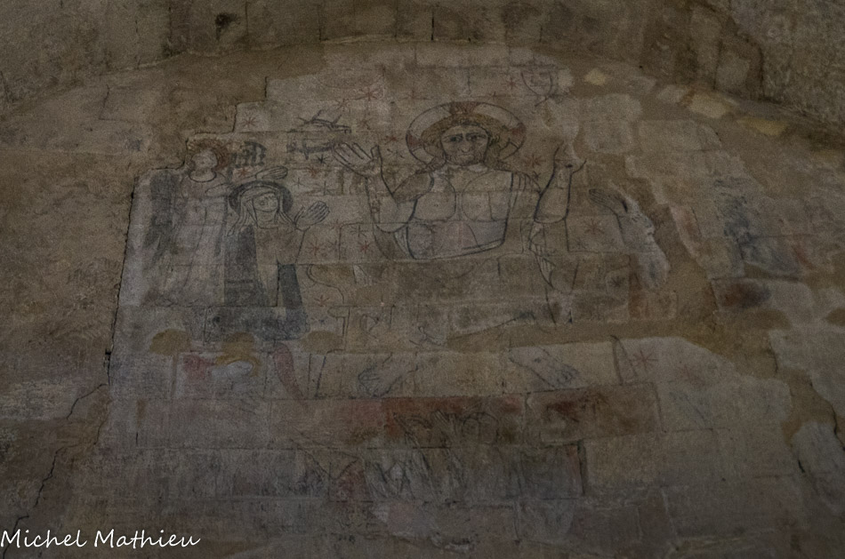 Saint Michel l’Observatoire L'Église Haute ou Église Saint-Michel. Les fresques des XIIème, XIIIème et XIVème siècles, au-dessus des arcades : elles représentaient le Christ en gloire, les stigmates visibles, avec les saintes femmes et des anges.