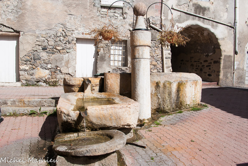 Fontaine en cinq pièces, construite en 1829 et payée, selon la tradition, « avec son poids en blé ».