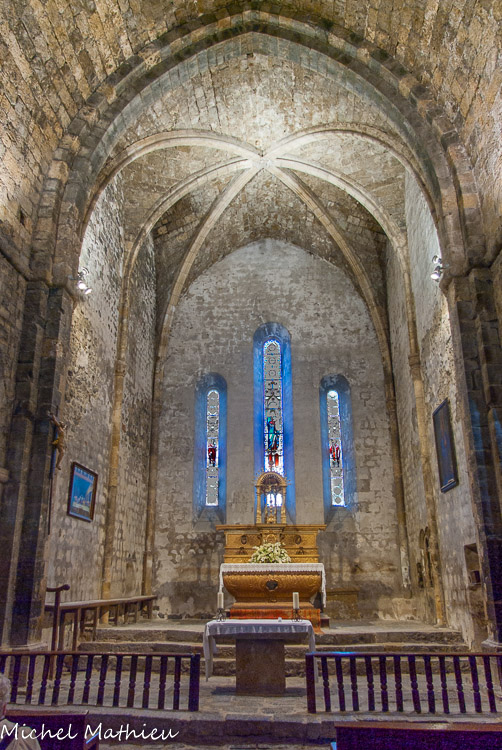 Le chevet est plat. Les baies de l’abside sont de grande taille.