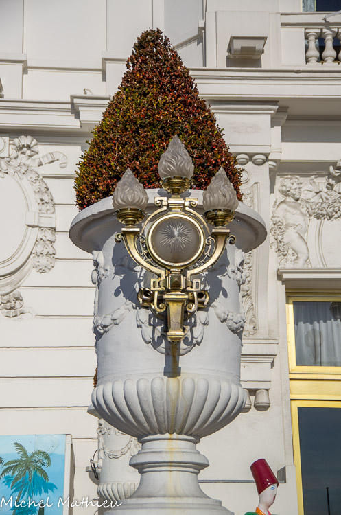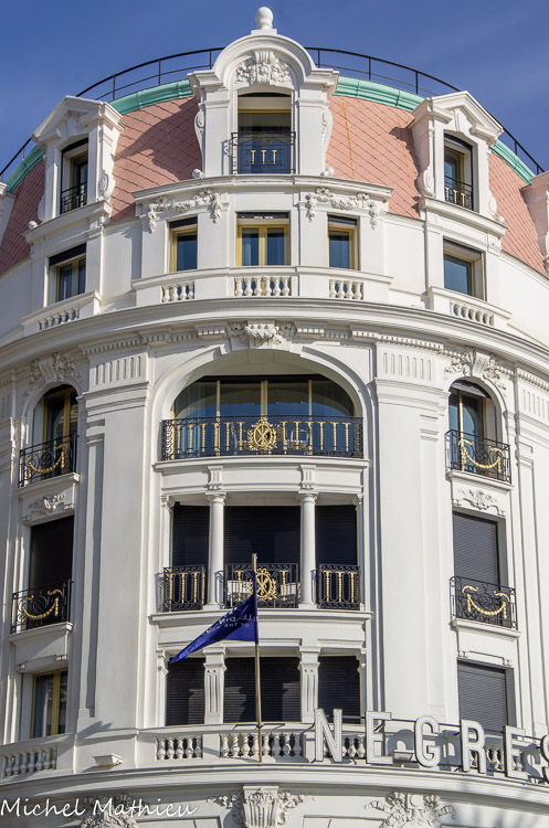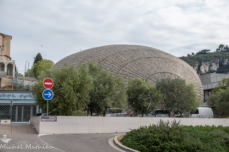 Le lycée Masséna, l'église Saint Jean Baptiste dit du Voeu, le Théatre National de Nice, le Musée d'Art Moderne et d'Art Contemporain, la place Garibaldi.