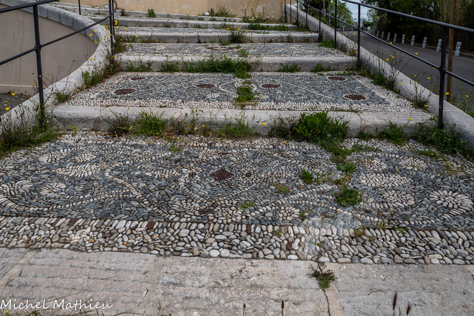La calade est une technique traditionnelle typique des régions du sud de la France qui tout en offrant un écoulement des eaux optimal permet un rendu esthétique en disposant des galets de différentes teintes. Les galets sont ensablés pour permettre l'écoulement des eaux.