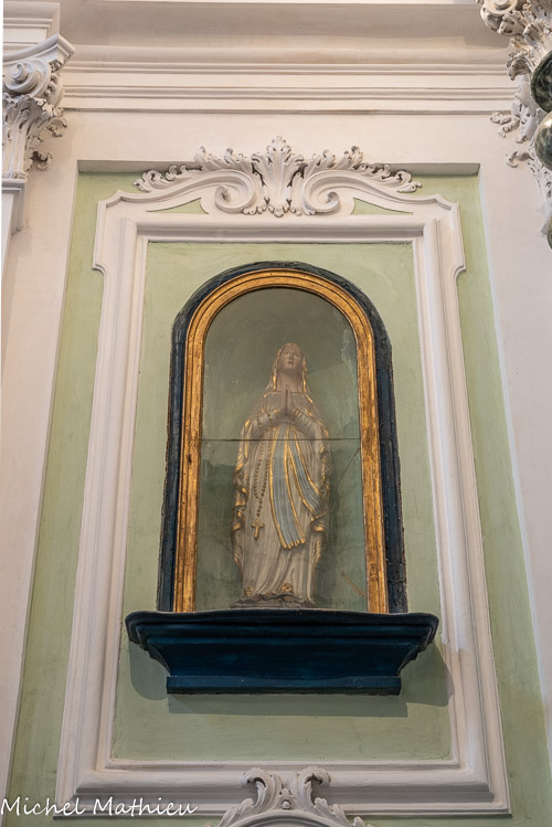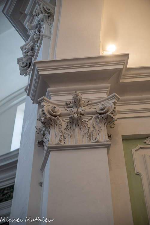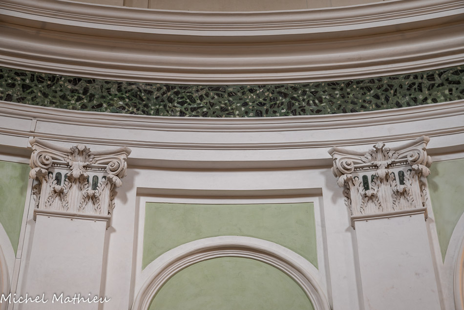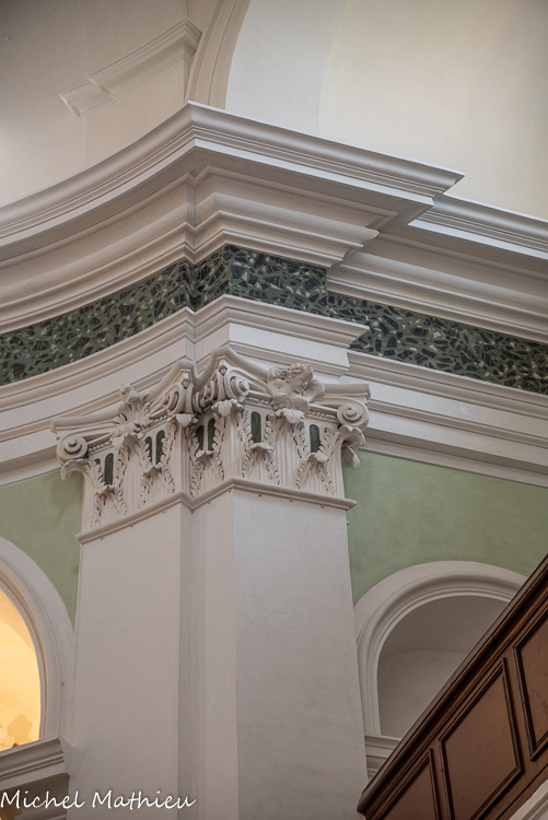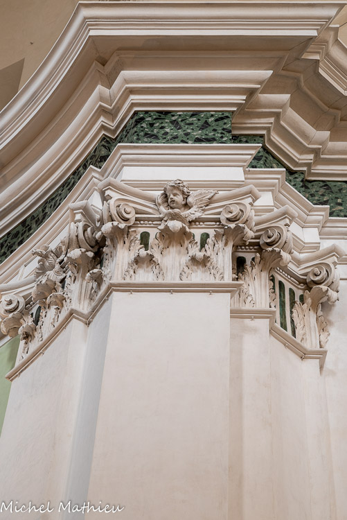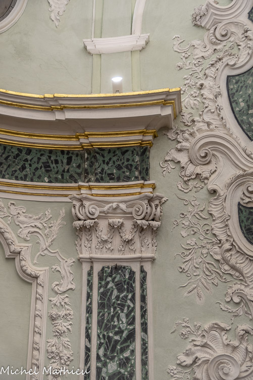 Les chapelles latérales sont ornées de colonnes torses dans des tons de vert.