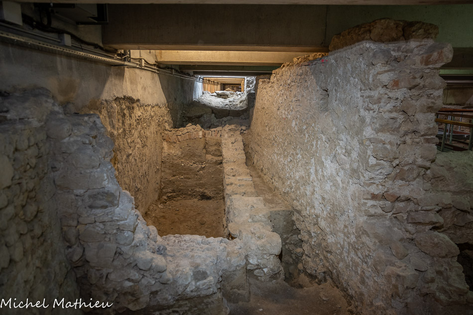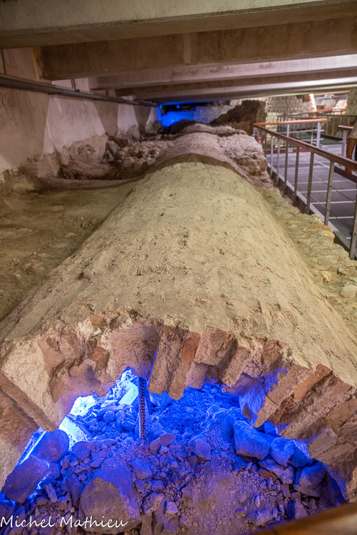 Entre les deux murs, on remplit avec de la terre, des pierres. Ce sera ensuite l'emplacement de la chapelle Saint Sébastien.