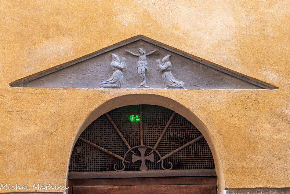 Chapelle de Sainte-Rita. Elle fut précédemment dédiée à la Sainte-Croix, puis à Notre-Dame-des-Sept-Douleurs avant d’être dédiée à Sainte-Rita en 1934. La statue de Sainte Rita, vénérée par les fidèles, est une œuvre naïve du début du XXe siècle.