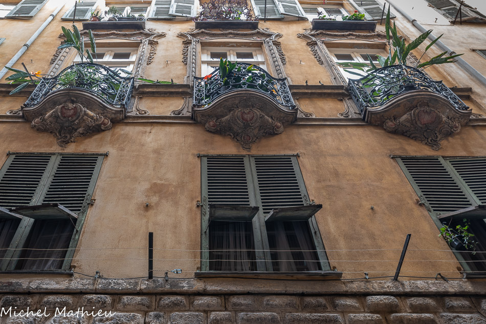 Maison « d'Adam et Eve » XVIe siècle. Cette maison simple porte un haut-relief représentant un homme et une femme sauvage souvent assimilés à Adam et Eve, ou, par la tradition populaire niçoise, aux incessantes querelles de ménage des habitants de l'immeuble. Autour, le décor en « sgraffito » est daté 1584
