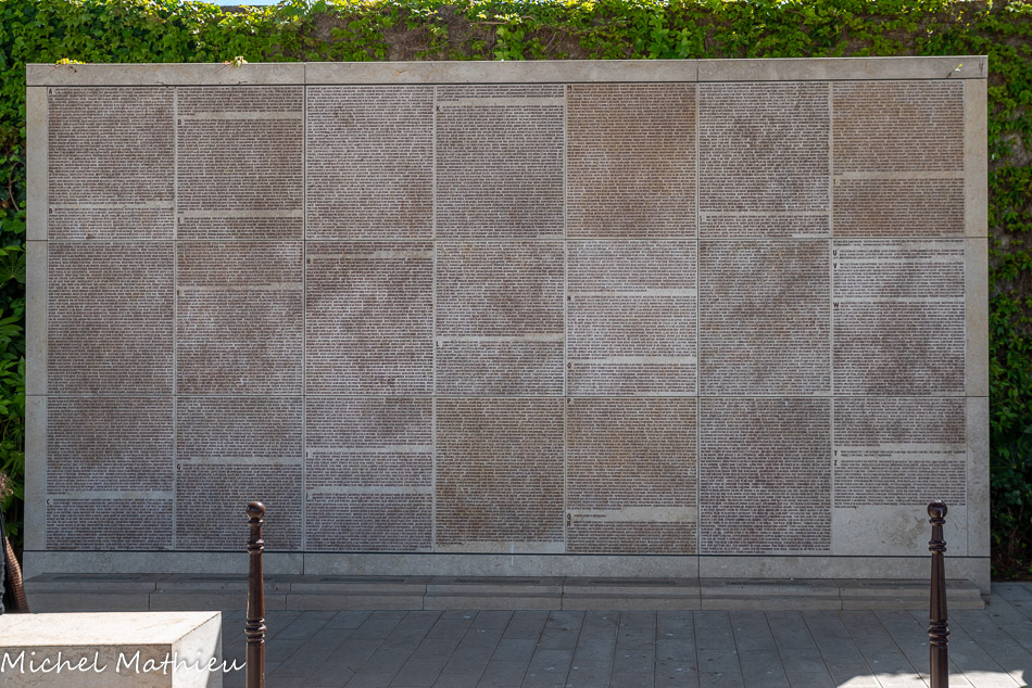 En face de l’entrée, l’émouvante pyramide élevée en hommage aux morts de l’incendie du
