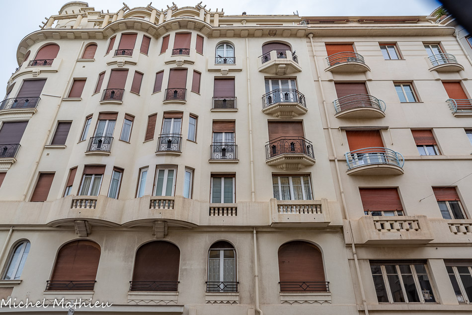 40 rue Verdi. 1928. Georges Dikansky, architecte . d’origine russe (1881-1963). Installé à Nice depuis 1919, Dikansky réalise dans cette ville l’essentiel de son œuvre et s’impose comme un des architectes importants de la période. Seul d’abord, puis après la guerre en collaboration avec son fils Michel, il se spécialise dans la construction d’immeubles.