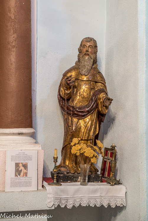 Statue de St Antoine abbé du 16ème siècle en bois doré.