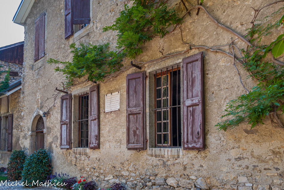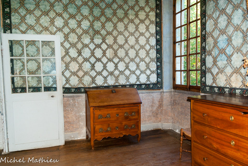 Chambre de Madame de Warens aux Charmettes. Les fenêtres s'ouvrent sur un cadre naturel largement préservé (site inscrit) qui contribue à donner à ces lieux leur charme évocateur.