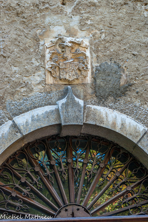 L'abbaye, ruinée durant la Révolution française, est rachetée par Charles-Félix, roi de Piémont-Sardaigne, en 1824 sur ses propres deniers. II confie sa restauration à l'architecte piémontais Ernest Melano. Porte de l'Aumône, avec les armes de Jacques de Poyria, abbé de Hautecombe de 1424 à 14737, son constructeur.