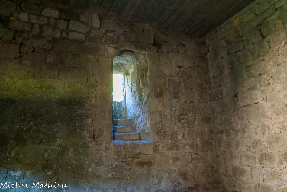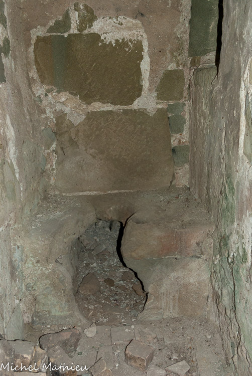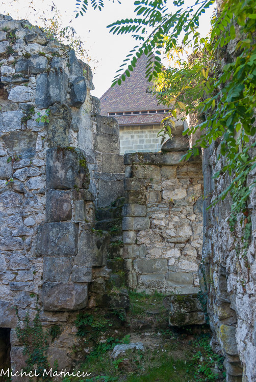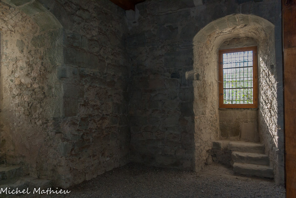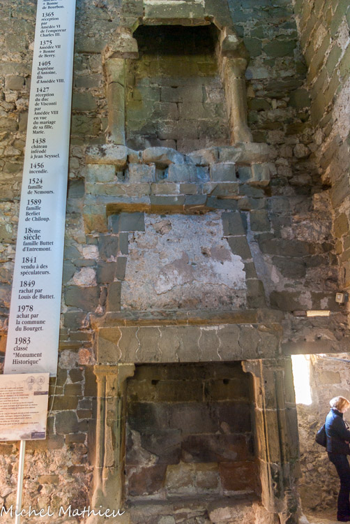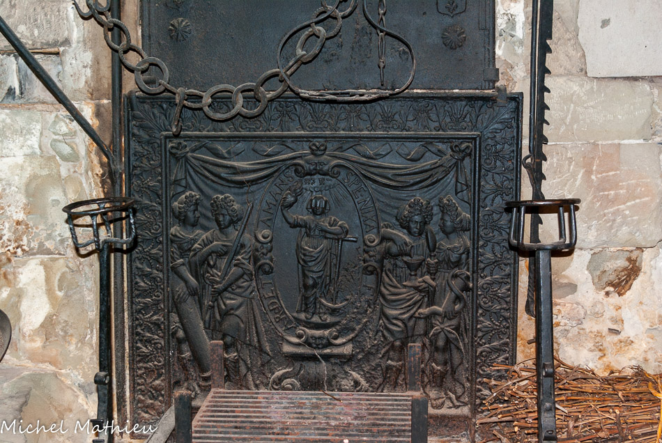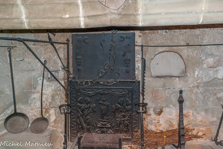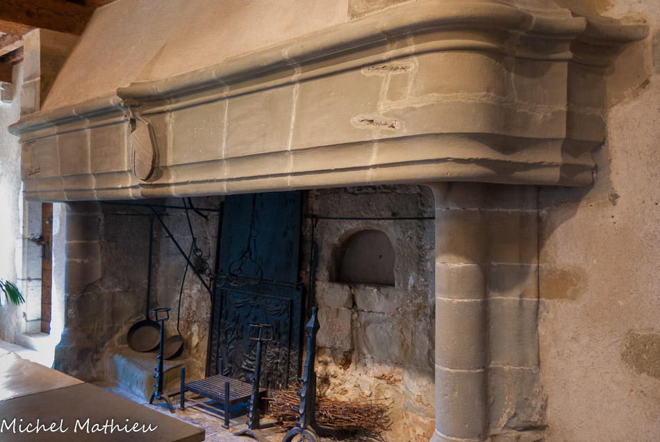 Tour nord-ouest. Deux cheminées en molasse dont celle du bas pourvue encore de sa hotte. .