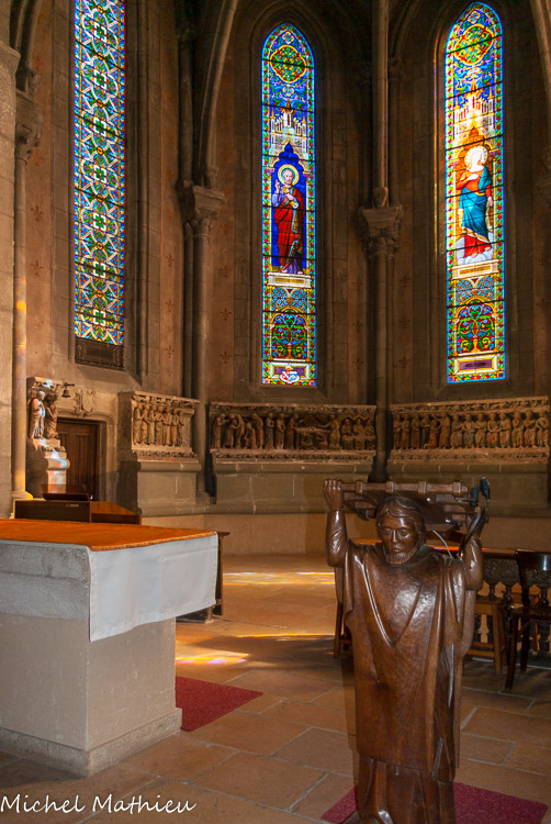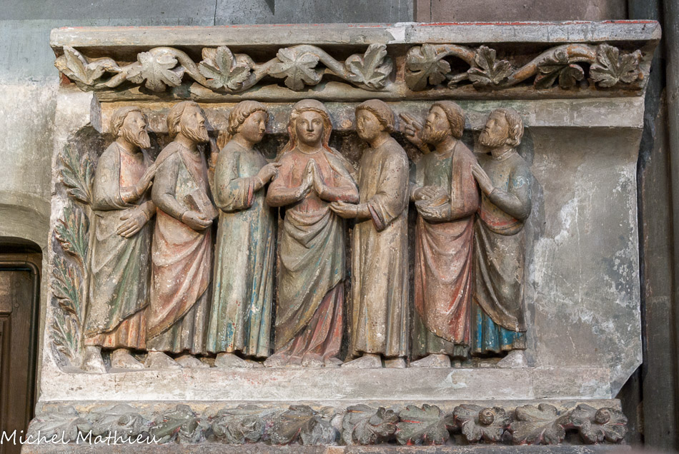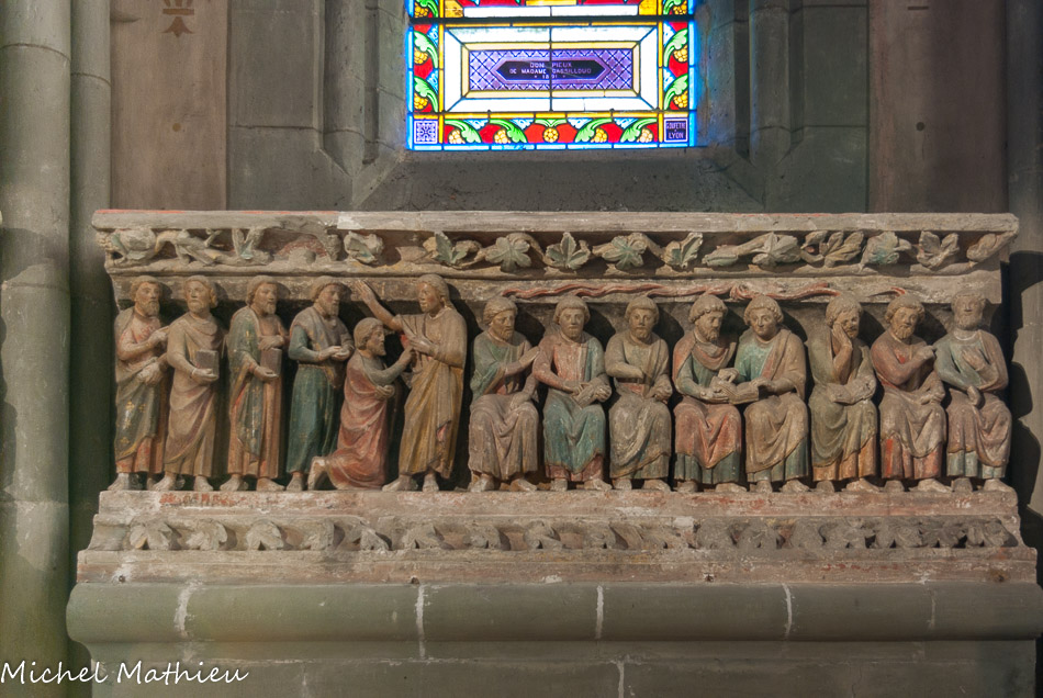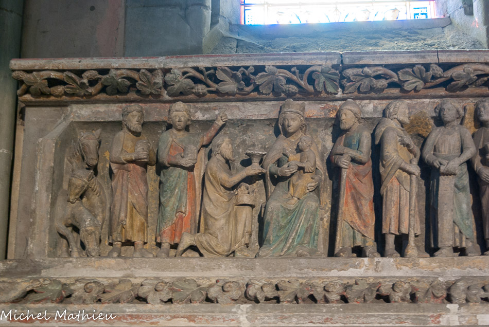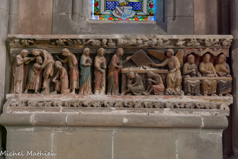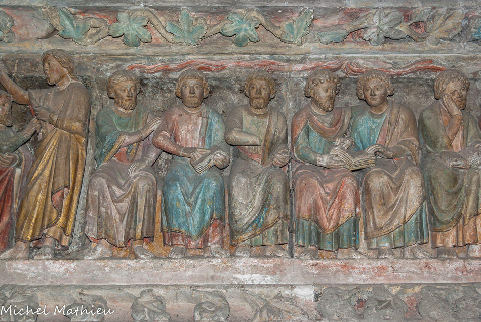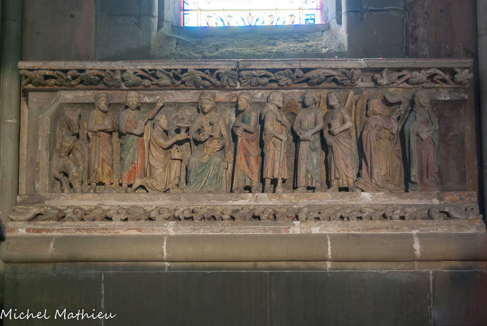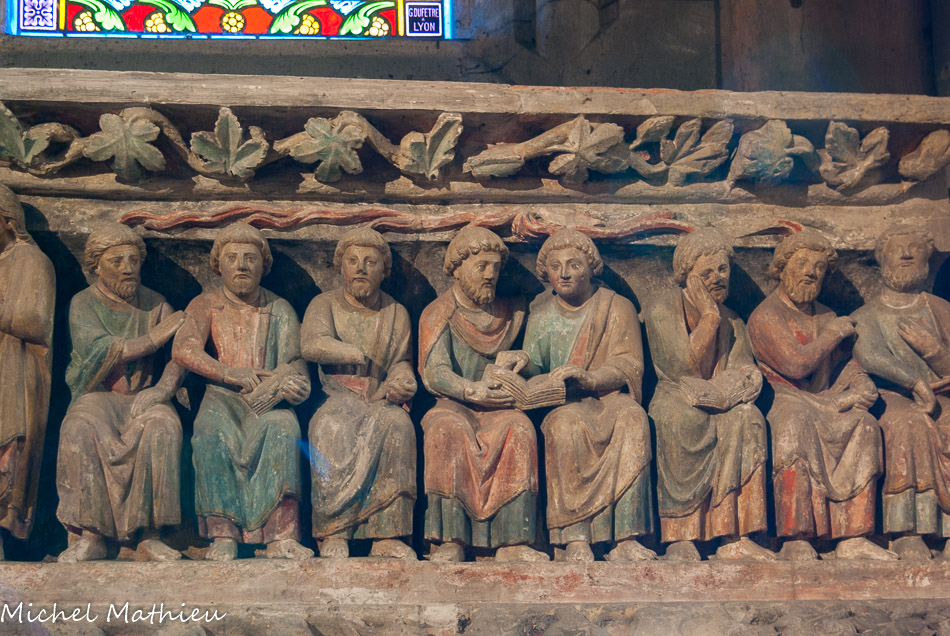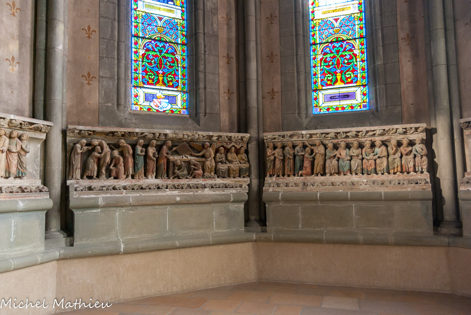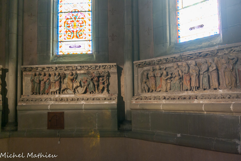 Les sculptures disposées aujourd'hui autour du chœur proviennent du jubé qui séparait depuis le XIIIe siècle le chœur des moines de la nef réservée au service paroissial. Ces sculptures polychromes, chef-d'œuvre par excellence, représentent les grands événements de la vie du Christ. Elles forment une série de six groupes sculptés sur des blocs de 1 m de haut. Nous ignorons le nom de l'artiste qui a sculpté cet ensemble, mais le style est celui de l'école Bourguignonne.