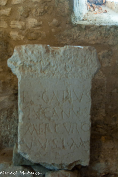 Ce qui se traduit par : (V.S.L.M : votus solvit libens merito) Titus Terentius Catullus a érigé cet autel à Mercure en accomplissement d’un vœu.