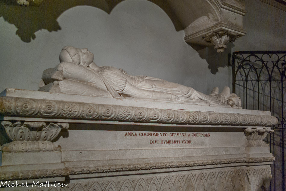 Tombe de Clémence de Zähringen, femme d'Humbert III de Savoie.