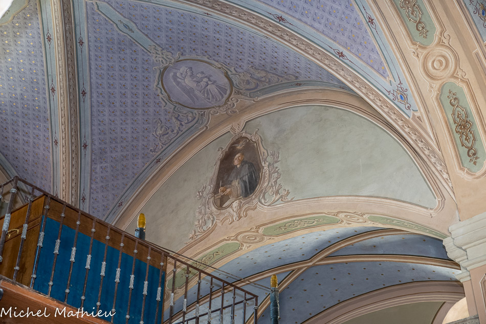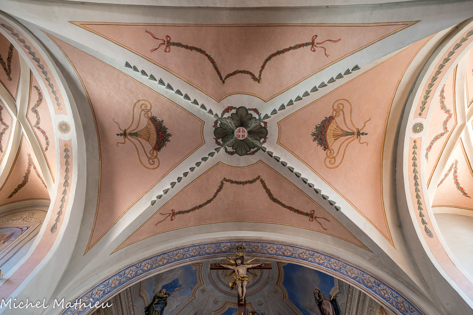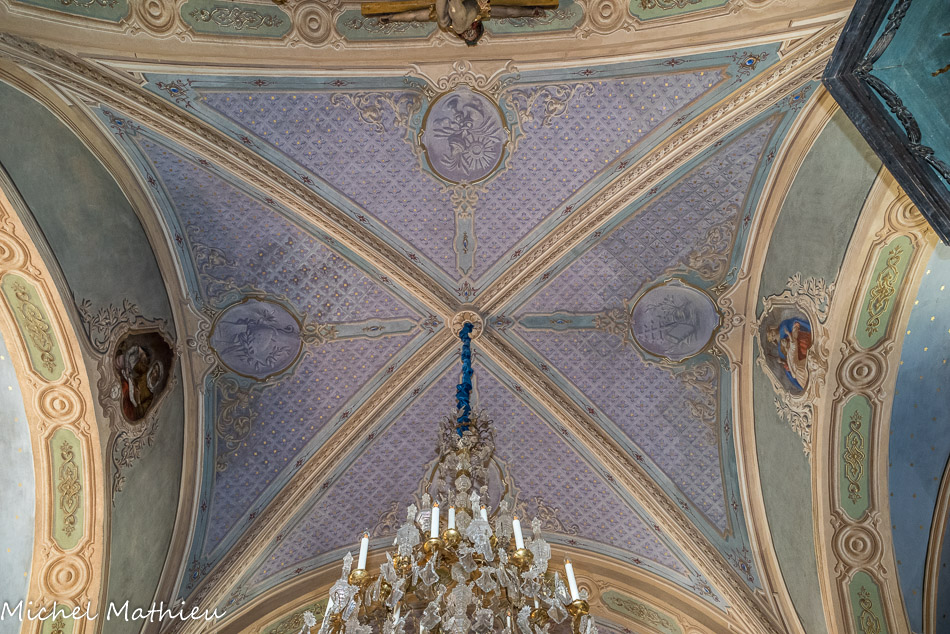 Les voûtes de la nef et des collatéraux sont dans le style du XVIIIe siècle : motifs végétaux et floraux, avec des chapeaux de cardinal. Ces peintures murales ont été restaurées en 1992.