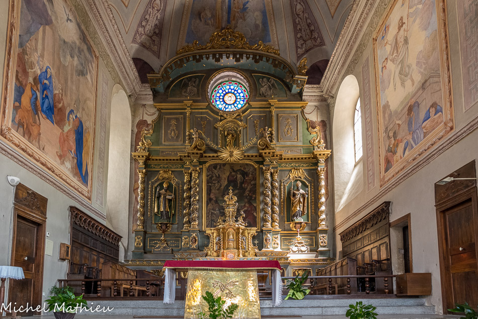 Dans le choeur, les œuvres en bois sont de de René Picard, le père de Franck.