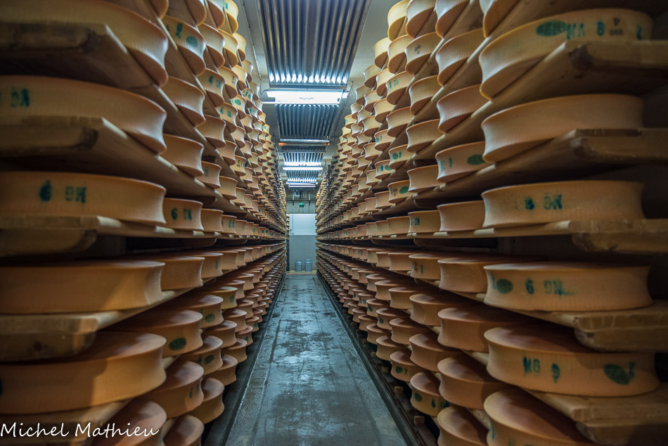 Placées sur des tablards en épicéa, dans les caves fraîches et humides, les meules sont salées, frottées et retournées deux