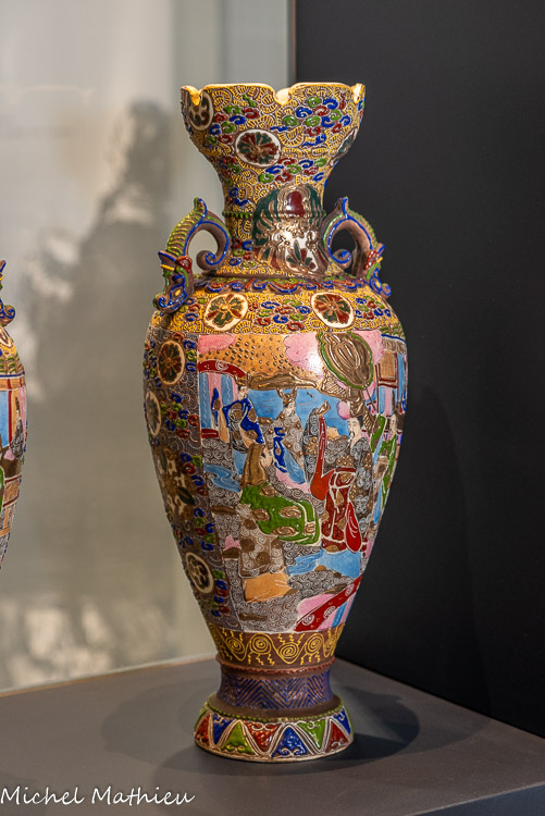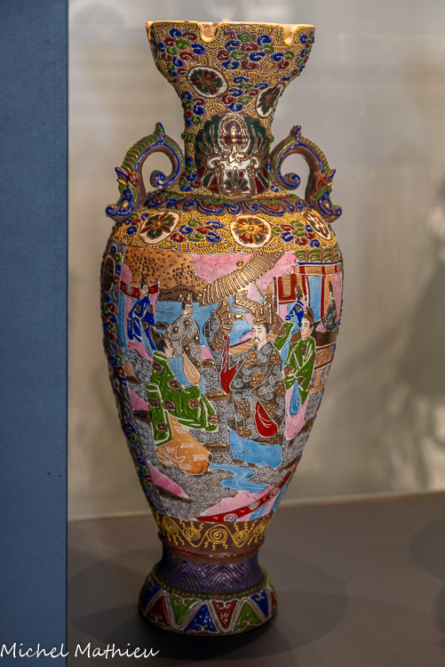 Cette pièce émane de l’atelier Kinkôzan, une des plus importantes manufactures de Kyoto, au style éclectique.