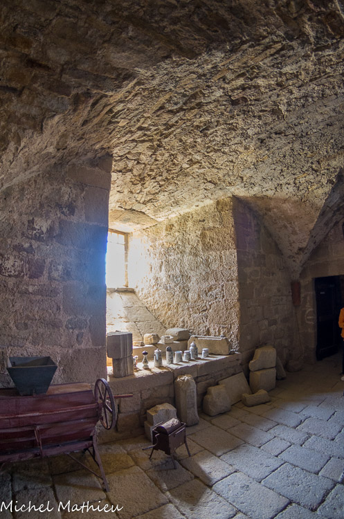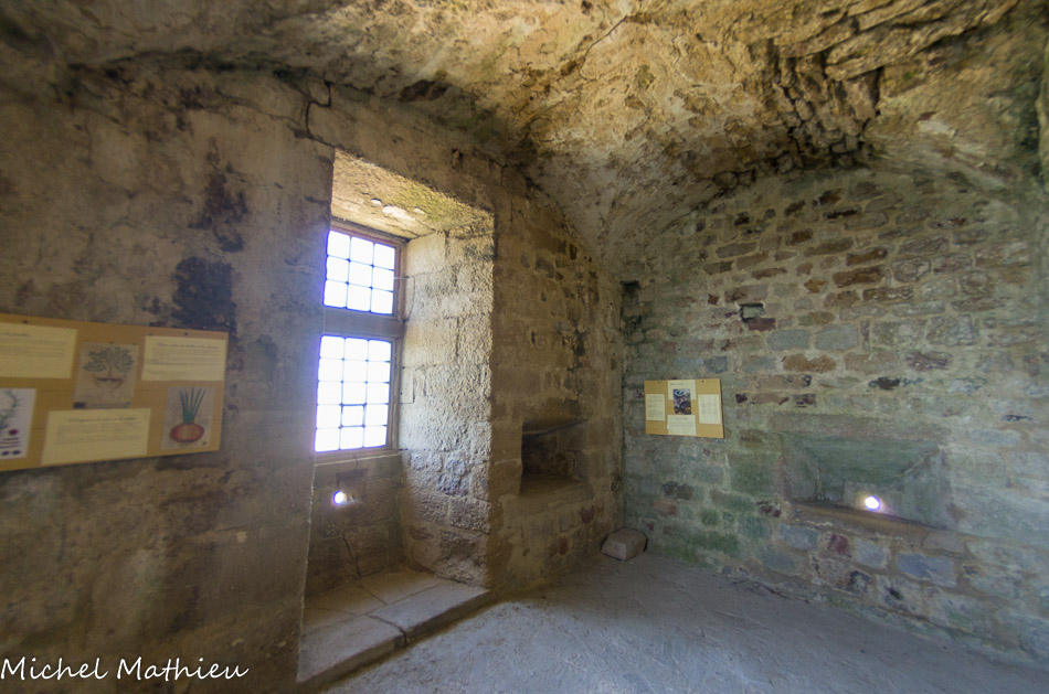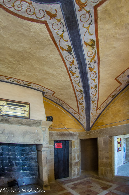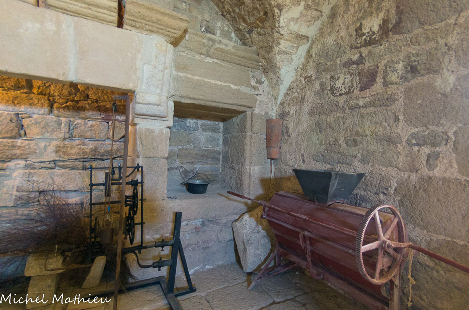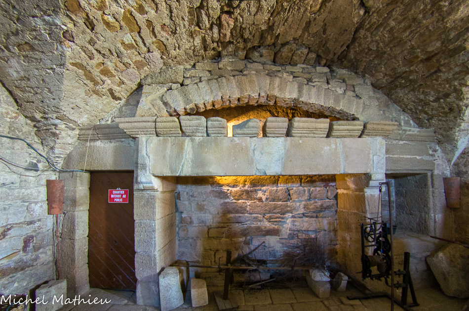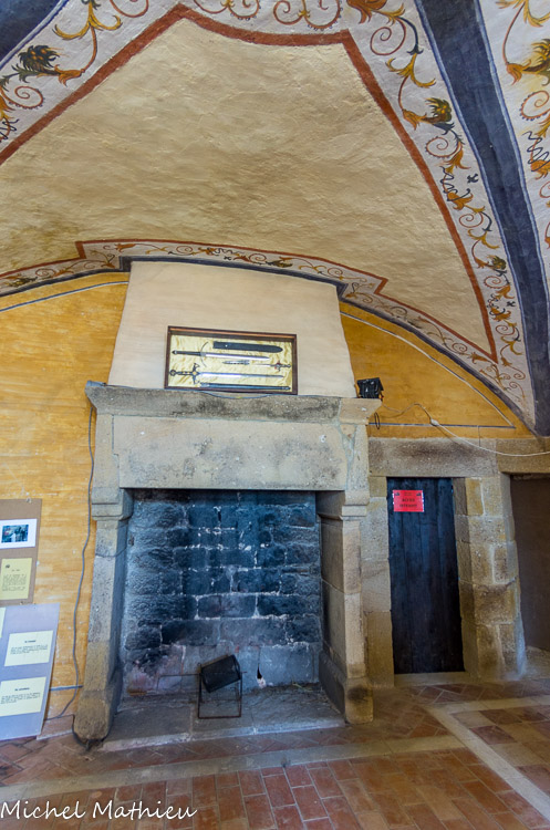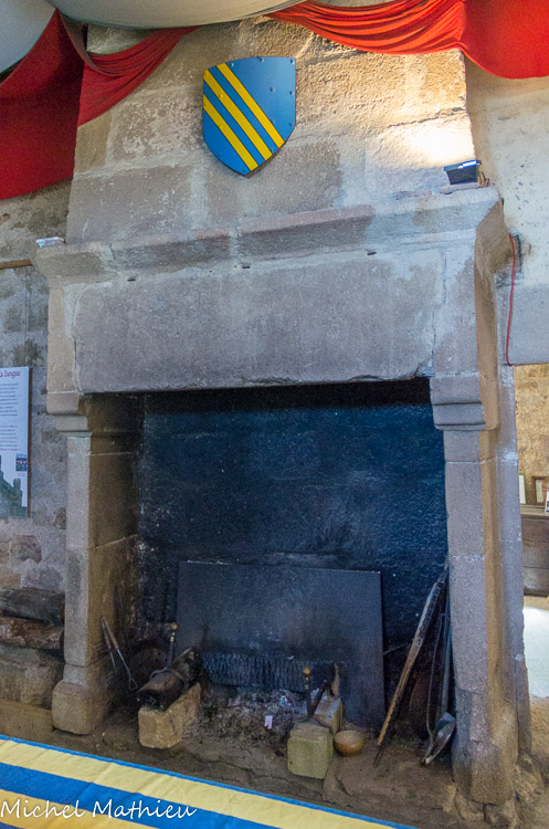 Le linteau de la cheminée, surmonté d'une frise, est formé d'une seule pierre de 3 m de long.